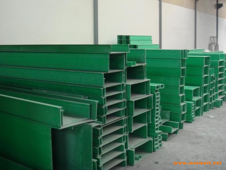 玻璃钢,铝合金和大跨距电缆桥架。还有电缆线槽,线筛, 槽式弯通,三通,四通和直通,以及托臂,吊架。