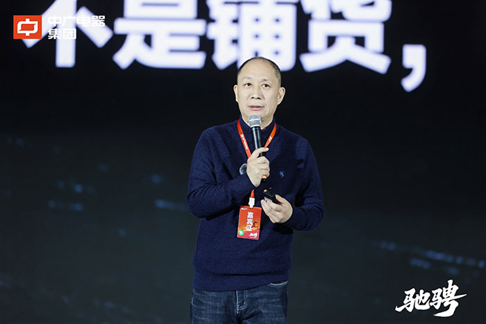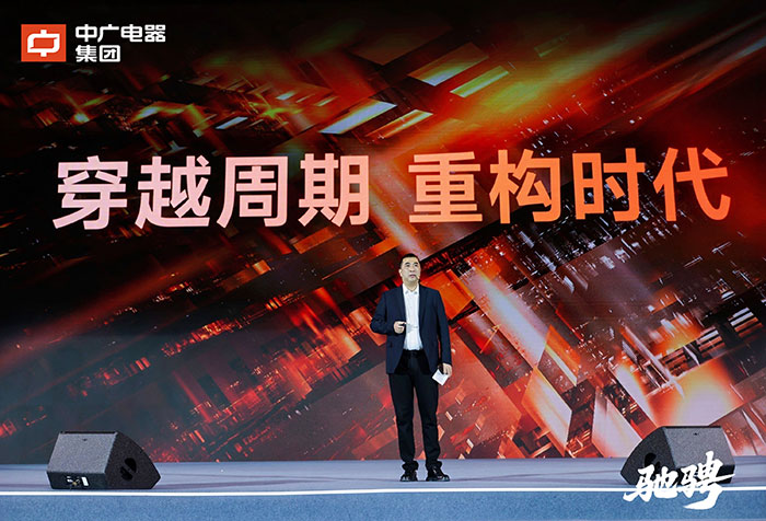 中广电器集团董事长朱建军作《驰骋》主题报告。朱建军首先对长期以来始终支持与关心中广的伙伴们致以真挚的感谢。他回顾了企业发展历程,明确根基稳健、发展向好,并结合行业发展数据指出当前市场处于“头部集聚、三足鼎立”的竞争格局,历经洗牌终将走向“头部引领、中小补位”的新格局。他认为,厚积者终将领航未来,中广电器非常有信心能够在“3+3”的格局中占据领先地位。