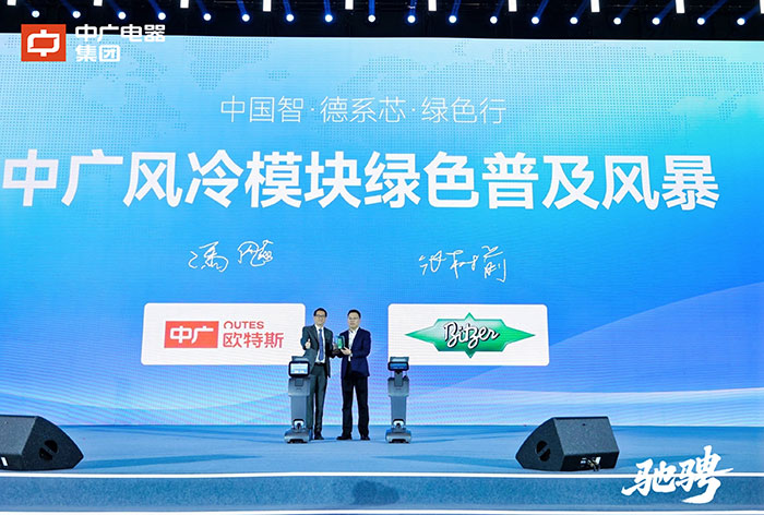 大会现场,中广电器集团代表与全球制冷压缩机领域领军企业比泽尔集团代表携手,共同启动“绿色风暴——风冷模块普及风暴”营销活动。比泽尔大中华区高级副总裁、执行董事冯飚表示,双方将强强联合,共拓绿色热泵市场,为全球用户提供更高效、更可靠的清洁能源综合解决方案。