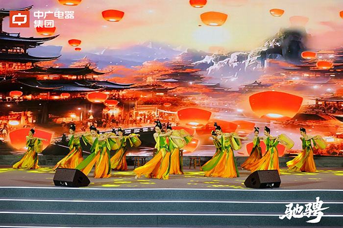 晚宴现场,中广电器集团带来了一系列精彩纷呈的文艺节目:男性高管率领营销团队带来小合唱《新征途》,歌声铿锵有力、尽显昂扬斗志,唱出了中广人奋进新征程的坚定决心;女性高管团队携女职工代表献上巾帼秀《逐梦芳华》,步履从容、风采卓然,完美展现新时代女性的坚韧与担当;压轴环节,中广电器集团员工代表齐声高唱《歌唱祖国》,激昂歌声响彻全场,将晚宴气氛推向最高潮,也让现场每一位嘉宾感受到中广浓厚的家国情怀与团队凝聚力。
